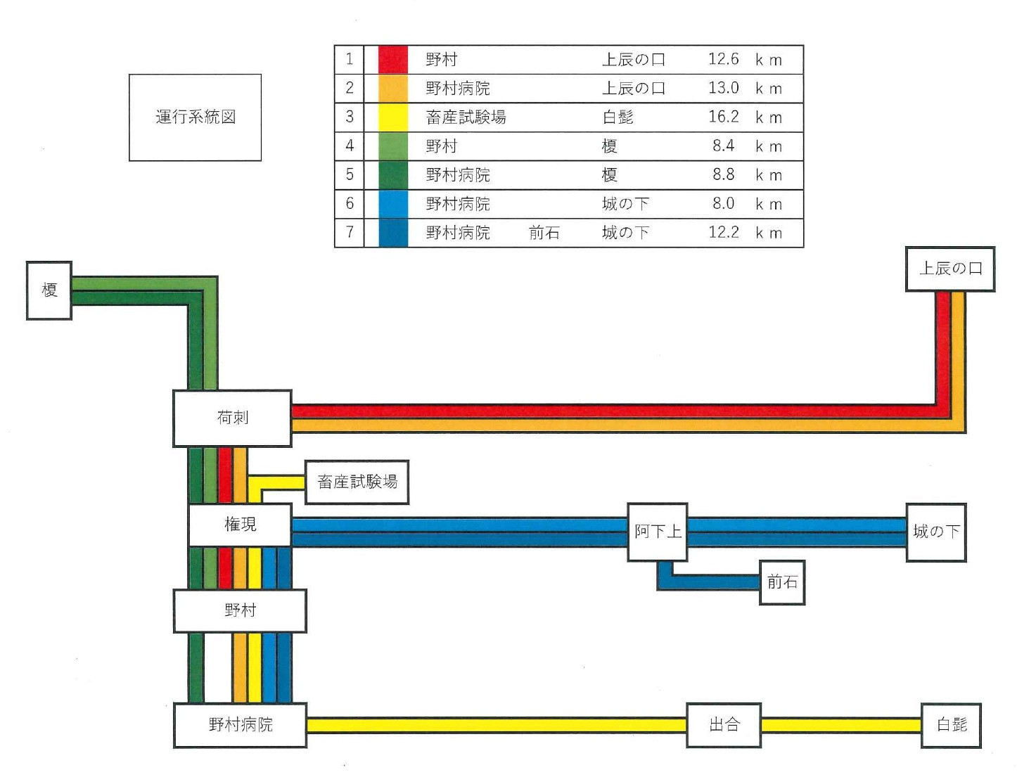 運行する路線は、上辰の口線・白髭線・榎線・城の下線です。